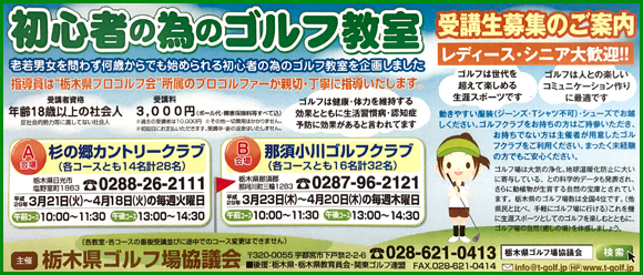 (主催:栃木県ゴルフ場協議会 宇都宮市下戸祭2-2-6 TEL:028-621-0413)