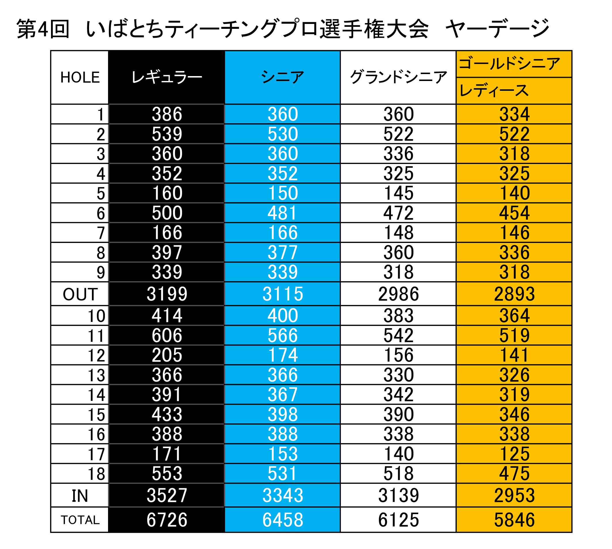 第4回いばとちティーチングプロゴルフ選手権 ヤーデージ表