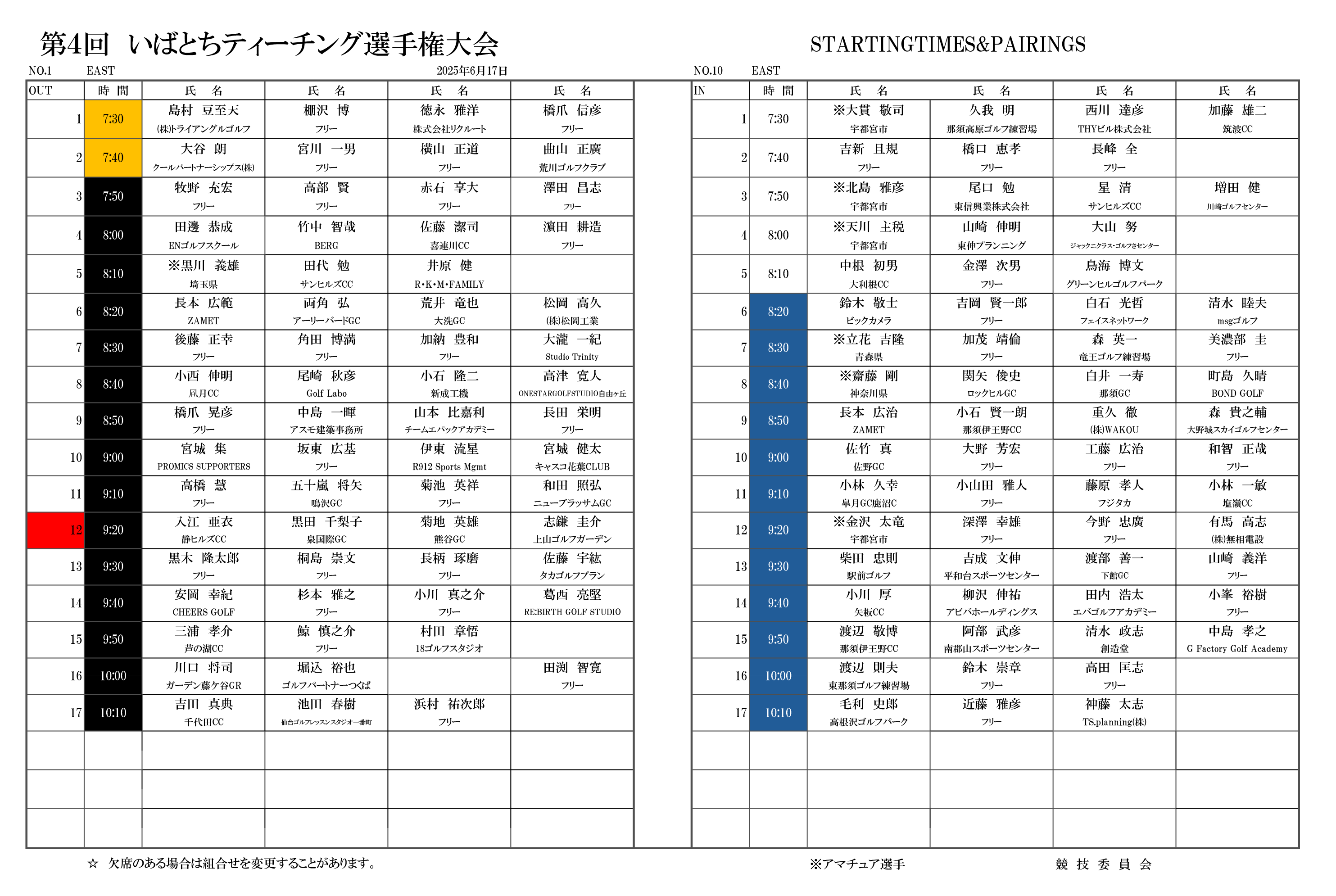第4回いばとちティーチングプロゴルフ選手権 組合せ表