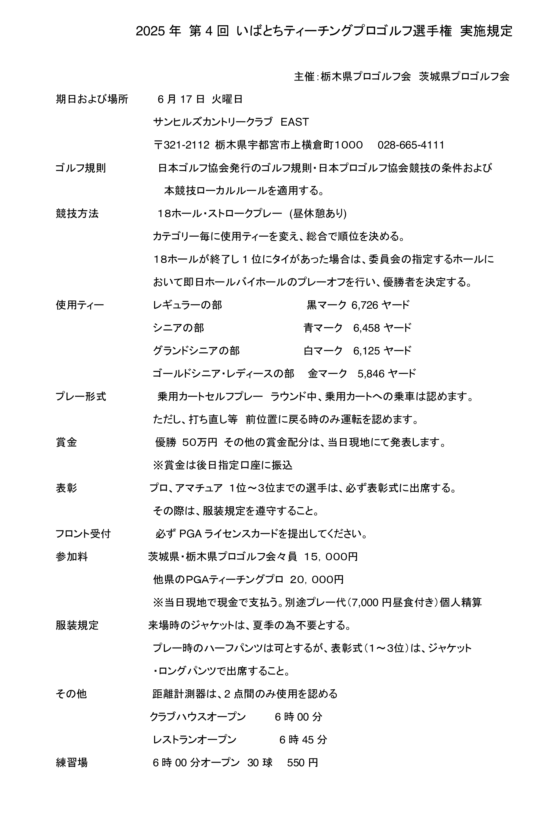 第4回いばとちティーチングプロゴルフ選手権 実施規定